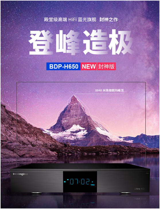 本文转载自海缔力官网/视频号及HIFI头条  ,时长00:58  海缔力的孺子牛  ,赞6  海缔力的孺子牛  ,赞25  登顶8848米珠穆朗玛峰  殿堂级高端HiFi蓝光旗舰  海缔力BDP-H650NEW封神版  4K高端HiFi