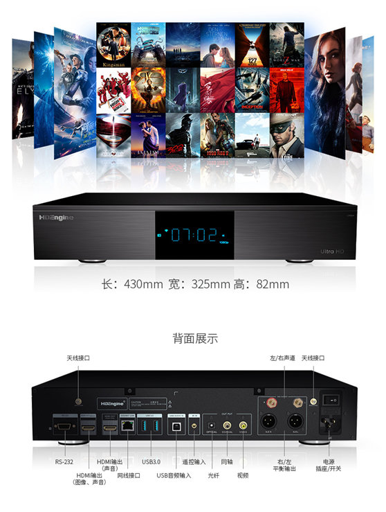 聚焦高端影音领域多年,海缔力拥有自研的炫彩影像动态处理技术,视像更惊艳。BDP-H650NEW采用了定制级研发的专业级六核A-55架构系统芯片,它搭载了先进的图像解码和处理技术,可以轻松硬解HEVCH/H.265编码的4KHDR影像 支持3840X2160@60HZ的真4K分辨率输出,内置更先进的DOLBYVISIONVS10画质处理引擎,支持DOLBYVISIONLLDV完整处理,即使普通影像也能够处理提升到更佳画质表现,并配合专业测试和精准调校可支持多更格式的媒体文件播放,输出更为清晰、自然的的画质。